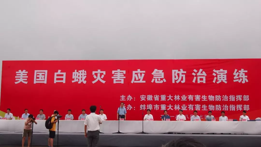 2018年8月17日,功成应邀参加了在安徽省蚌埠市举办的美国白蛾灾害应急防治演练活动,此次活动由安徽省重大林业有害生物防治指挥部主办、蚌埠市重大林业有害生物防治指挥部承办,安徽省人民政府副省长、安徽省重大林业有害生物防治指挥部指挥长张曙光等领导出席了此次活动。