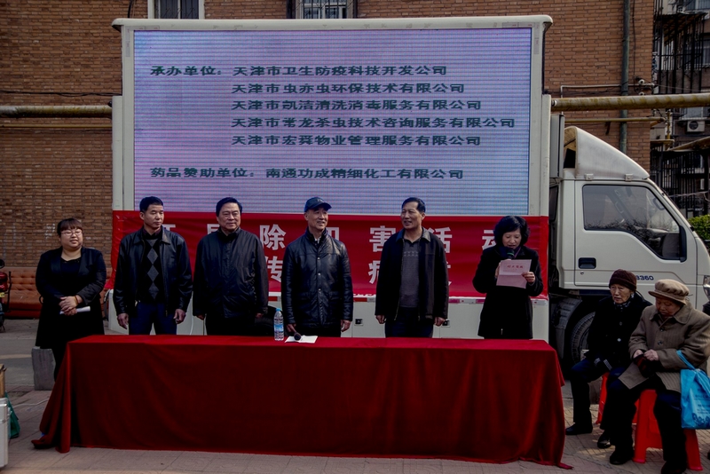 根据目前天津市蟑螂密度较高,侵害率较大的现状,2014年3月19日上午,由天津市有害生物防制协会主办,河西区爱卫办和河西区友谊路街协办,在河西区友谊路街谊城公寓,举行了“为社区贫困户、孤寡老人、残疾人家庭公益灭蟑活动启动仪式”。
