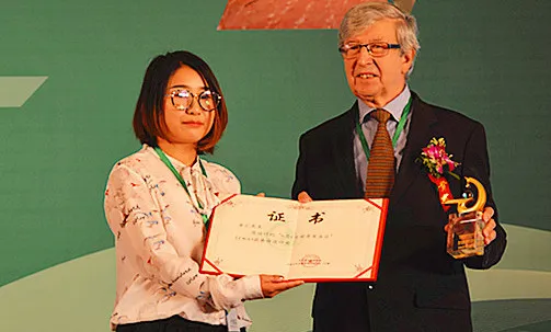 “世界害虫日”LOGO设计者——功成科技 金汇女士(左)